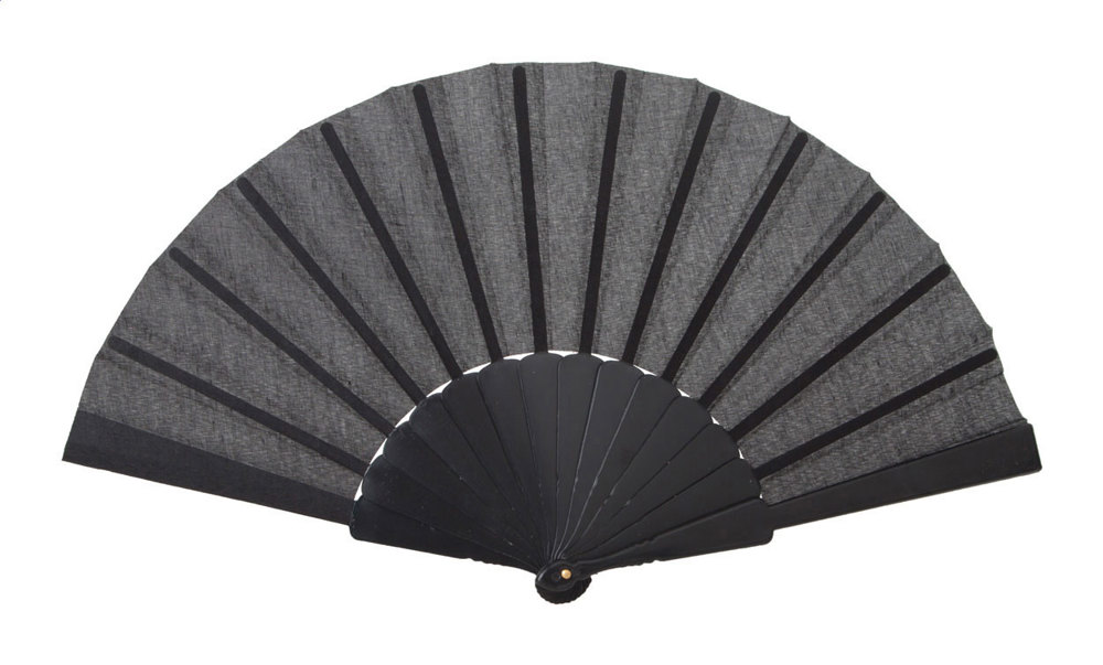 Fächer aus Stoff, Griff aus Kunststoff.