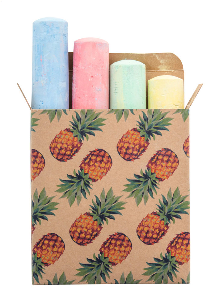 4-teiliges farbiges Kreideset in einer vollfarbig bedruckten Kraftpapierschachtel. Preis inklusive Digitaldruck. MOQ: 100 Stück.