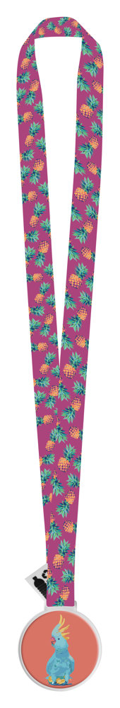 Individuelle Acryl-Madaille mit Doming-Druck und Lanyard aus RPET. Der Preis ist inklusive Doming und Sublimationsdruck auf beiden Seiten. Mindestmenge: 100 Stk.