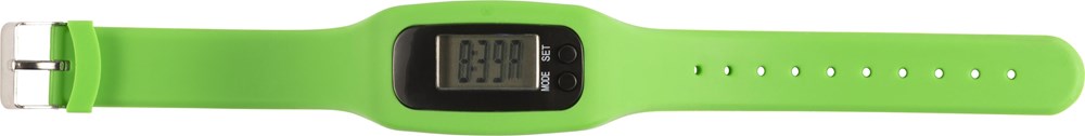 Schrittzähler 'Step' mit Silikonarmband. Zählt bis zu 99.999 Schritte, sowie Kalorien und Kilometer/Meilen. DC: 1.5V