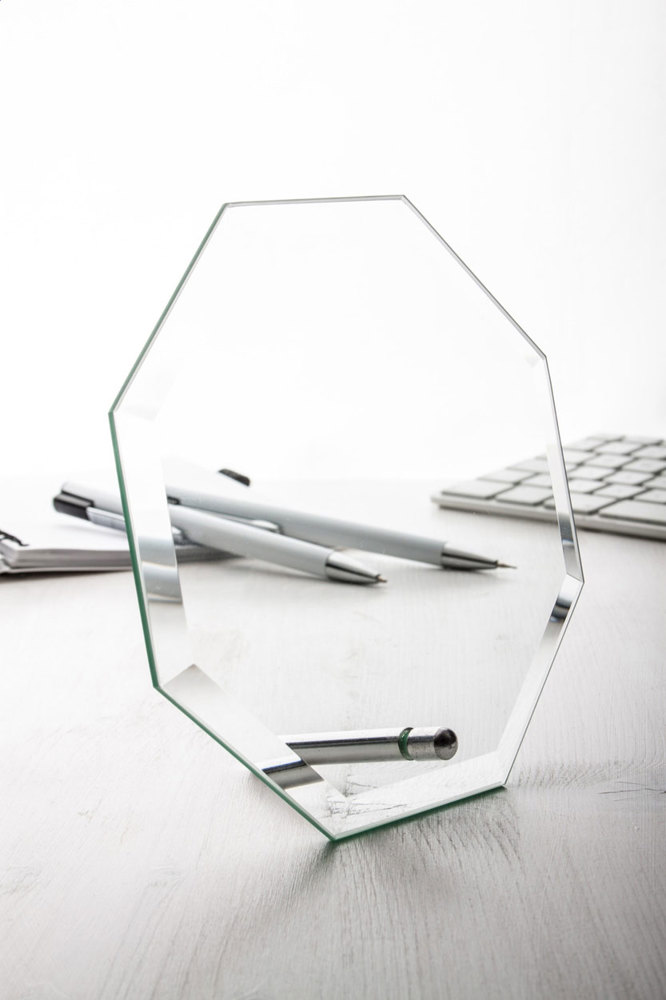Achteckige Trophäe mit Halter. Einzeln in schwarzer Geschenkbox. mehr