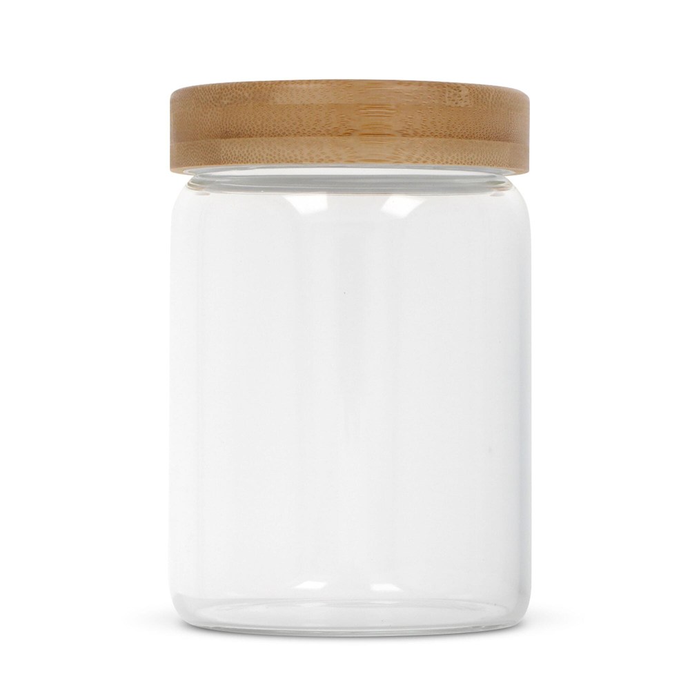 Wir präsentieren unseren eleganten 900-ml-Glaskanister mit einem stilvollen Bambusdeckel. Bewahren Sie Ihre wichtigsten Dinge mit Klasse auf. Perfekt für die Organisation in Küche und Haushalt.