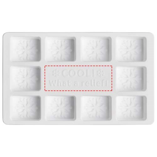 Dieser Eiswürfelbehälter bietet eine neuartige Möglichkeit, Ihr Logo oder Ihre Botschaft auf einem sehr nützlichen Produkt zu präsentieren. Ihre Botschaft kann im zentralen Bereich und/oder am Boden jeder einzelnen Würfelform durch Reliefprägung angebracht werden, um eine fühlbare Oberfläche zu schaffen.