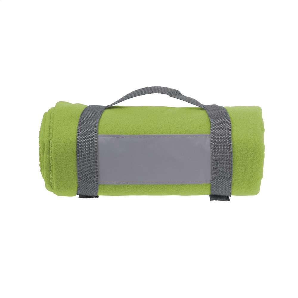 Decke aus 100% Fleece (180 g/m²). Mit praktischer Trageschlaufe. Maße aufgeklappt 150 x 120 cm.