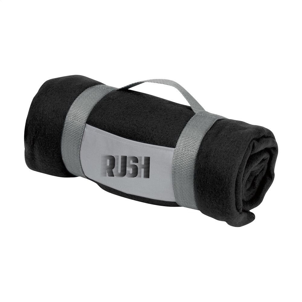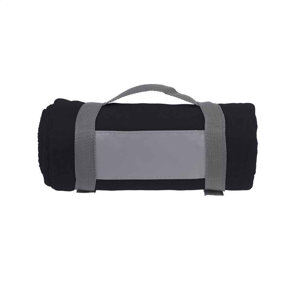 Decke aus 100% Fleece (180 g/m²). Mit praktischer Trageschlaufe. Maße aufgeklappt 150 x 120 cm.