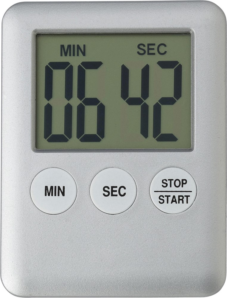 Küchenuhr aus Kunststoff, mit LCD-Display, Magnet und Alarmfunktion.