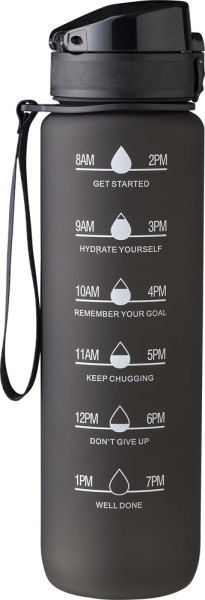 rPET-Trinkflasche (1000 ml) mit matter Oberfläche und Handgelenkband. Auslaufsicher.