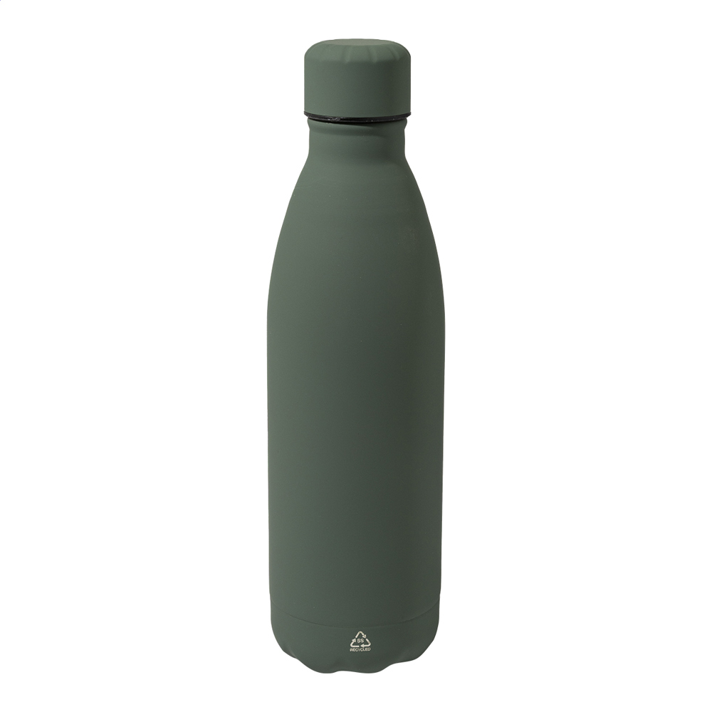 Recycelte Edelstahlflasche mit gummierter Oberfläche. Füllmenge: 790 ml.