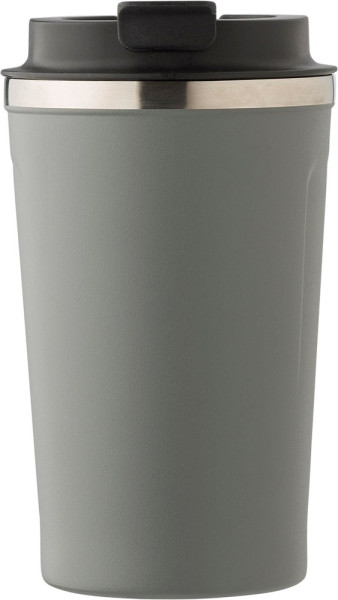 Doppelwandiger Becher aus Edelstahl (380 ml) mit Deckel und auslaufsicherem Verschluss.