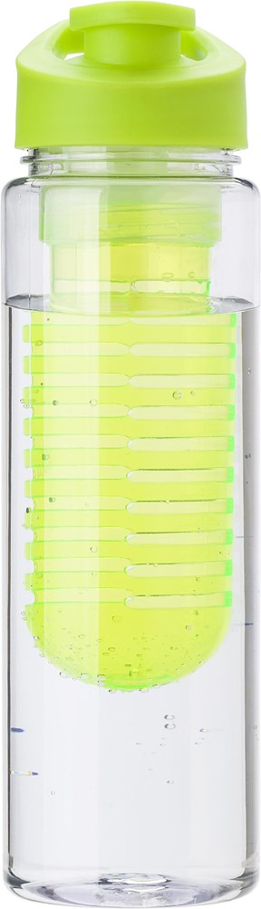 Trinkflasche aus Tritan mit einem Fassungsvermögen von ca. 700 ml und einem Einsatz für Früchte. Der Deckel ist mit einem praktischen Schraubverschluss sowie einem Henkel versehen.
