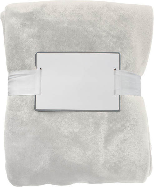 Decke aus Flanellvlies (280 gr/m²) mit weißem Band und Karton. Größe: 120 x 150 cm.
