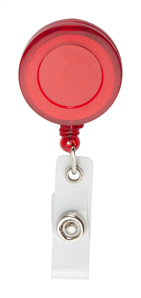 Ausweishalter mit Zugschnur und Druckknopf, aus transparentem Kunststoff.