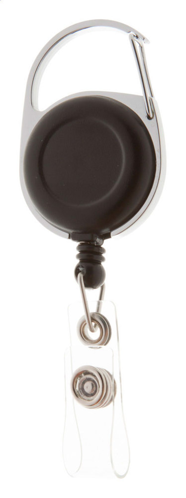 Ausweishalter aus Metall und Kunststoff mit ausziehbarer Schnur und Karabiner. mehr