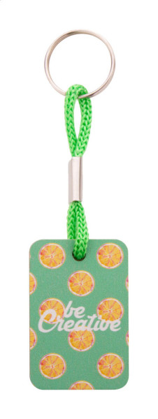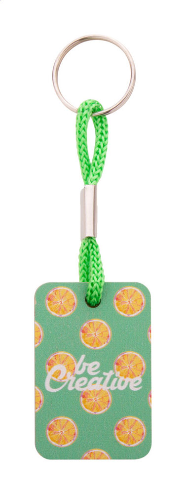 Rechteckiger Schlüsselanhänger aus Birkensperrholz mit farbigem Band aus Polyester und Vollfarbdruck. Der Preis ist inkl. UV Druck auf einer Seite. Mindestmenge: 200 Stk.