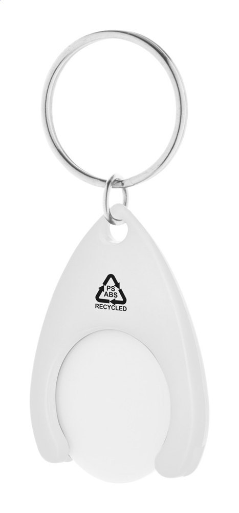 Schlüsselanhänger aus recyceltem ABS und recyceltem PS Kunststoff mit EKW-Chip und Metall-Schlüsselring. Chip-Größe: ø24×2 mm.