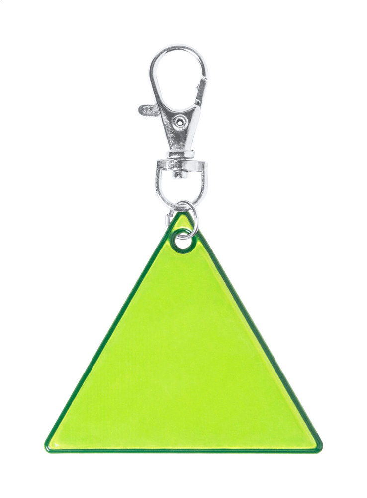 Dreieckiger, reflektierender Schlüsselanhänger mit Karabinerhaken. Material: PVC. Nur für Werbezwecke, das Produkt erfüllt nicht die Eigenschaften von persönlicher Schutzausrüstung.