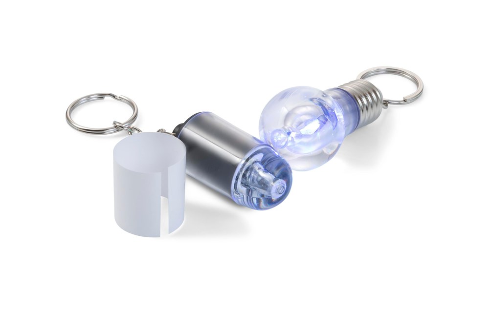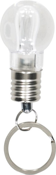 Schlüsselanhänger aus Kunststoff, mit LED-Lampe (weiß) und Metall-Schlüsselring.