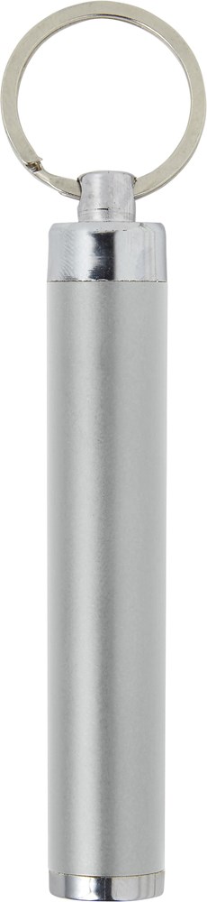LED-Taschenlampe mit glänzendem Gehäuse, welches optimal geeignet ist, um eine Lasergravur anzubringen. Das gravierte Logo leuchtet, wenn das Licht der Lampe eingeschaltet wird.