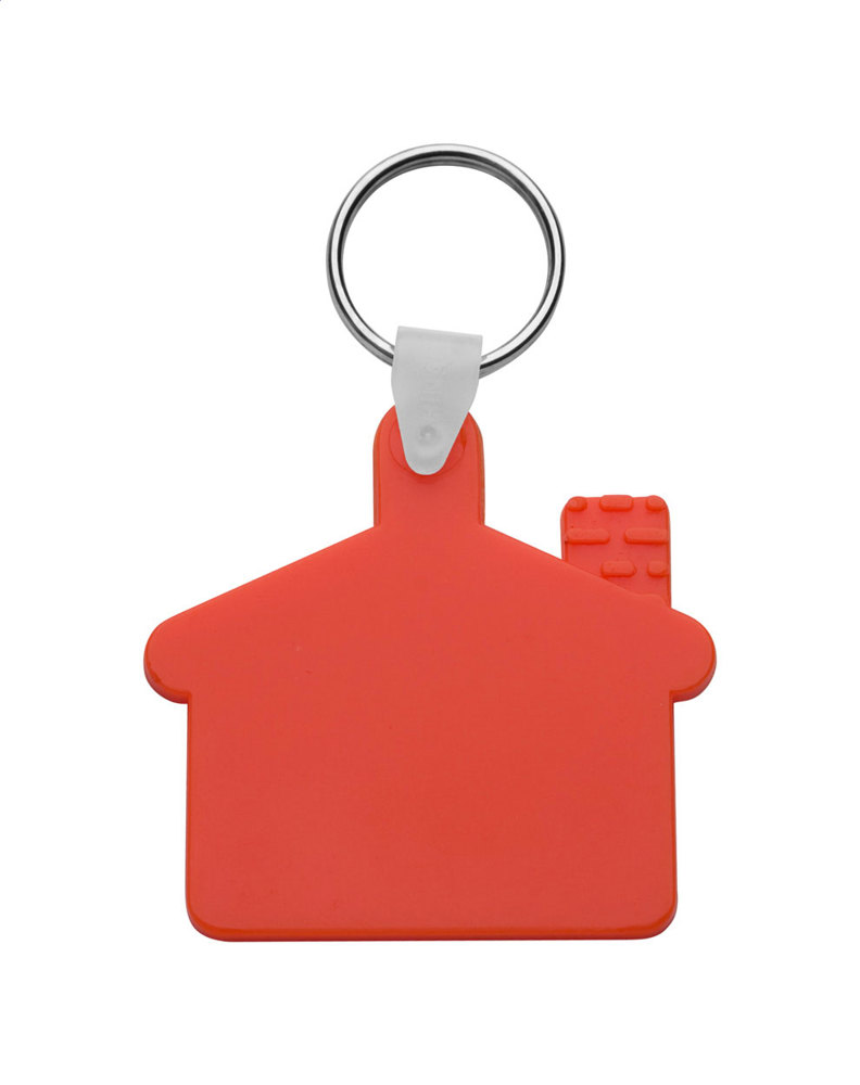 Schlüsselanhänger in Hausform mit Metall-Schlüsselring.