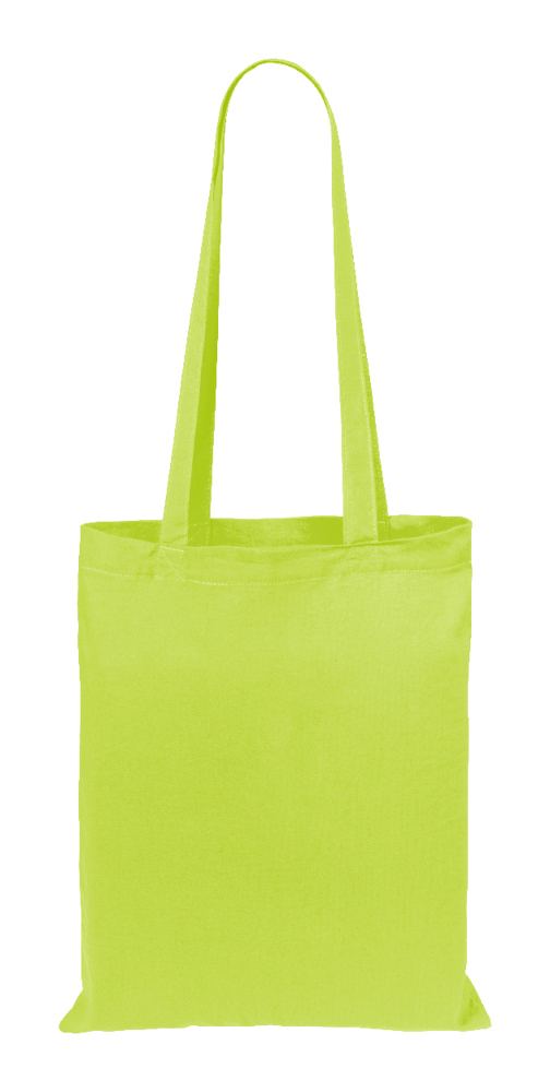 Farbige Einkaufstasche mit langen Henkeln. Material: 100% Baumwolle, 140 g/m².