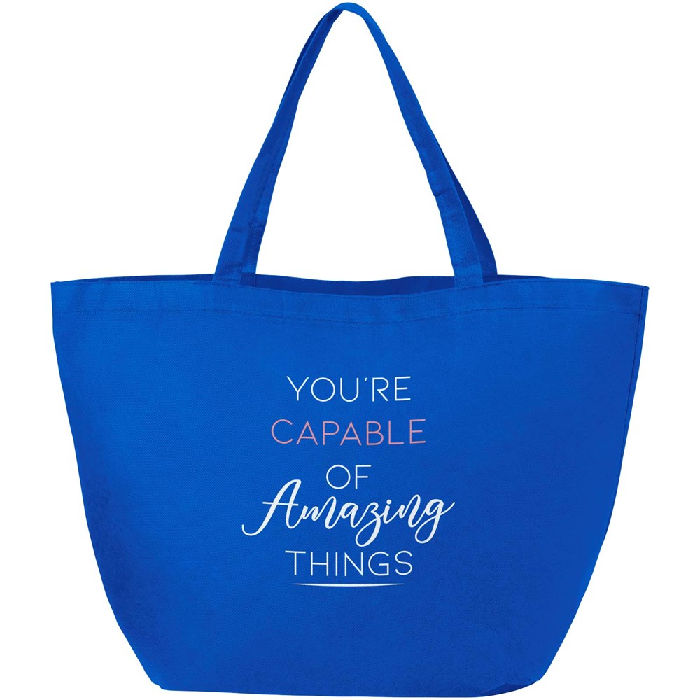 Die Maryville-Tragetasche ist eine gute Alternative zur Einweg-Plastiktüte. Sie bietet genügend Platz für den Aufdruck von Logos oder Texten, und der Vliesstoff macht die Tragetasche robust und vielseitig einsetzbar. Die Griffe sind 18 cm lang, so dass die Tragetasche leicht in der Hand oder über der Schulter getragen werden kann. In dem großen Hauptfach lassen sich außerdem problemlos mehrere Gegenstände verstauen. Kurzum: die ideale Tasche zum Einkaufen oder für einen Tag am Strand oder im Park. Belastbar bis zu 10 kg.