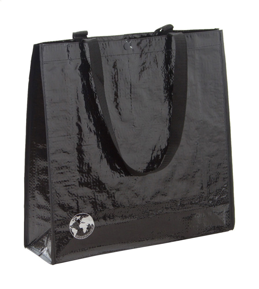 Biologisch abbaubare Einkaufstasche aus PP Woven (120 g/m²) mit Druckknopf.