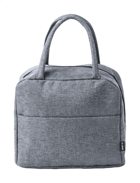 Kühltasche aus RPET-Polyester mit Reißverschlussfach, Aluminiumpolsterung und Henkeln. Material: 600D RPET-Polyester. Mit RPET-Labeln.