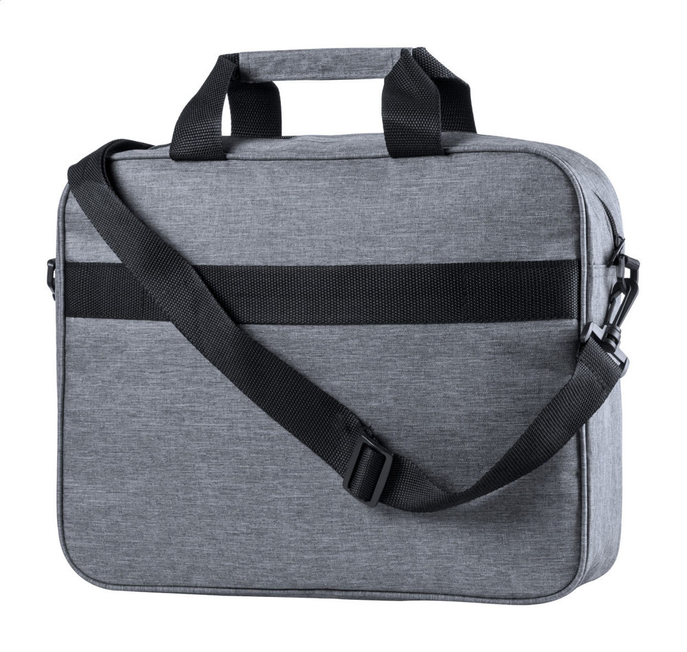 Dokumententasche mit RFID-Ausleseschutz, gepolstertem Laptop- und Tabletfach (15" & 10"), gepolstertem Schultergurt und eingebautem USB-Anschluss für Powerbanks. Material: 300D Polyester.