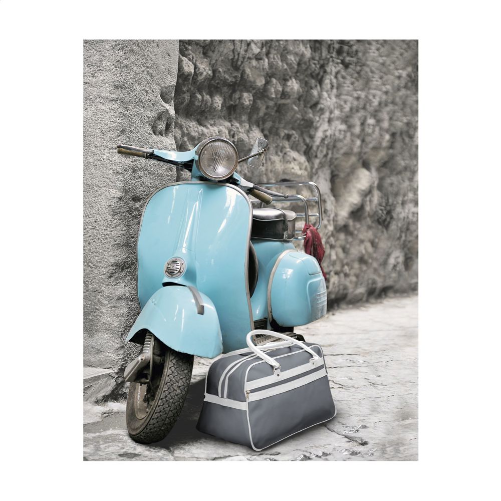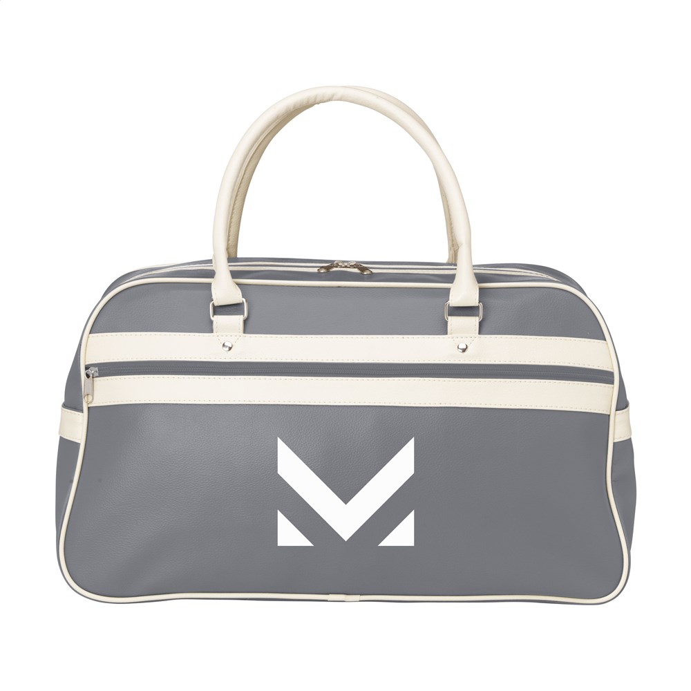 PVC/PU Sporttasche im 70er Jahre-Look mit gefütterter Innenseite, Hauptfach und Reißverschlussfach, 2 stabilen Handgriffen, Einlegeboden und Schutznoppen. Stilvoll verarbeitet mit hochwertigen Materialien, die eine extra lange Lebensdauer garantieren. Fassungsvermögen ca. 21,5 Liter.