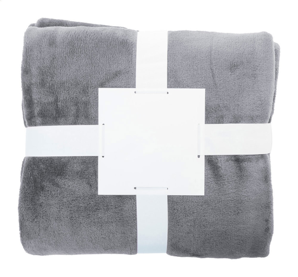 RPET-Flanell-Fleecedecke, 260 g/m². Eingewickelt mit einem Band und bedruckbarer Papierkarte.