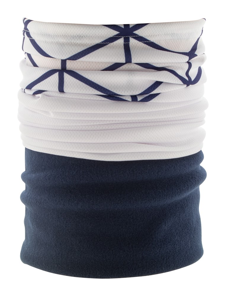Individueller Multifunktionsschal aus atmungsaktivem und schnell trocknendem Polyester mit farbigem Polarfleece-Halswärmer. Der Preis ist inkl. vollflächigem Sublimationsdruck auf dem Polyesterteil. Material: 100 % Polyester (135 g/m²) und Polarfleece (160 g/m²). Mindestmenge: 100 Stk.