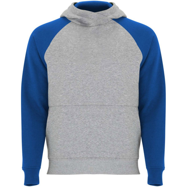 Zweifarbiger Unisex Kapuzenpulli. Kapuze mit gekreuztem Kragen und Metallösen. Innenkapuze, Kordelzug und Raglanärmel in Kontrastfarbe. Kängurutasche. Bündchen und Saum aus elastischem 1×1-Rippstrick. Abnehmbares Etikett.
