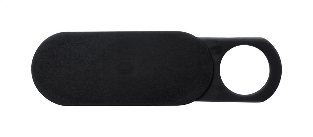 Webcamblocker aus Kunststoff mit Schiebeabdeckung und selbstklebender Rückseite.