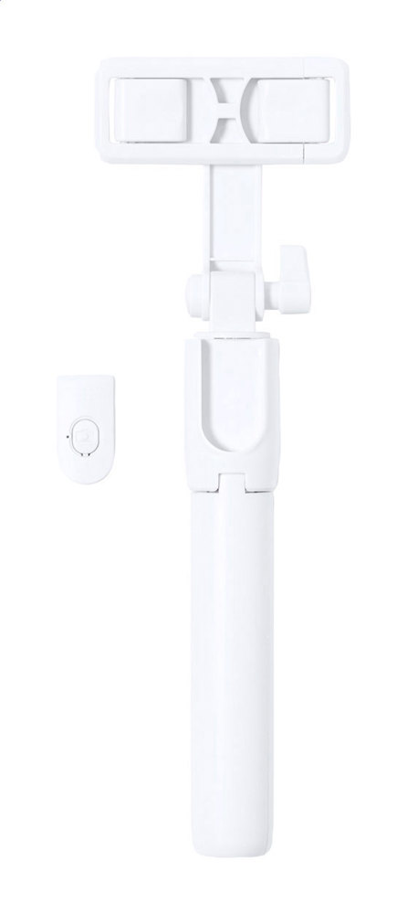 Zusammenklappbares Stativ und Selfie-Stick aus ABS-Kunststoff und Edelstahl mit verstellbarem Handyhalter. Inklusive drahtloser Auslöser-Fernbedienung.