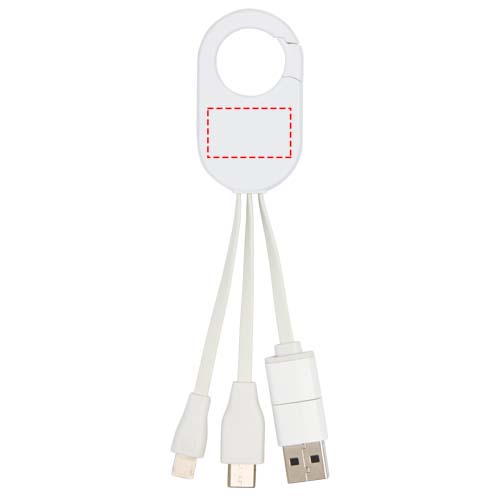 Das Troop 4-in-1-Ladekabel aus recyceltem Kunststoff verfügt über USB-A- und Typ-C-Eingänge in Kombination mit kombinierten Typ-C- und Lightning/Micro-USB-Ausgängen, mit denen die meisten Smartphones, Kameras, Powerbanks und Ohrhörer aufgeladen werden können. Der integrierte Karabinerhaken ermöglicht eine einfache Befestigung an einer Tasche oder einem Schlüsselanhänger, so dass Sie Ihre Geräte immer und überall mit Strom versorgen können.