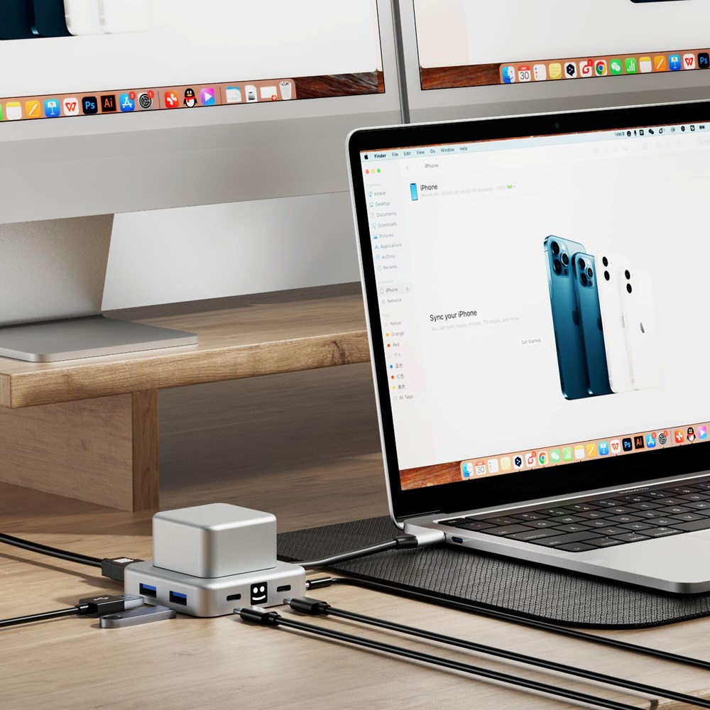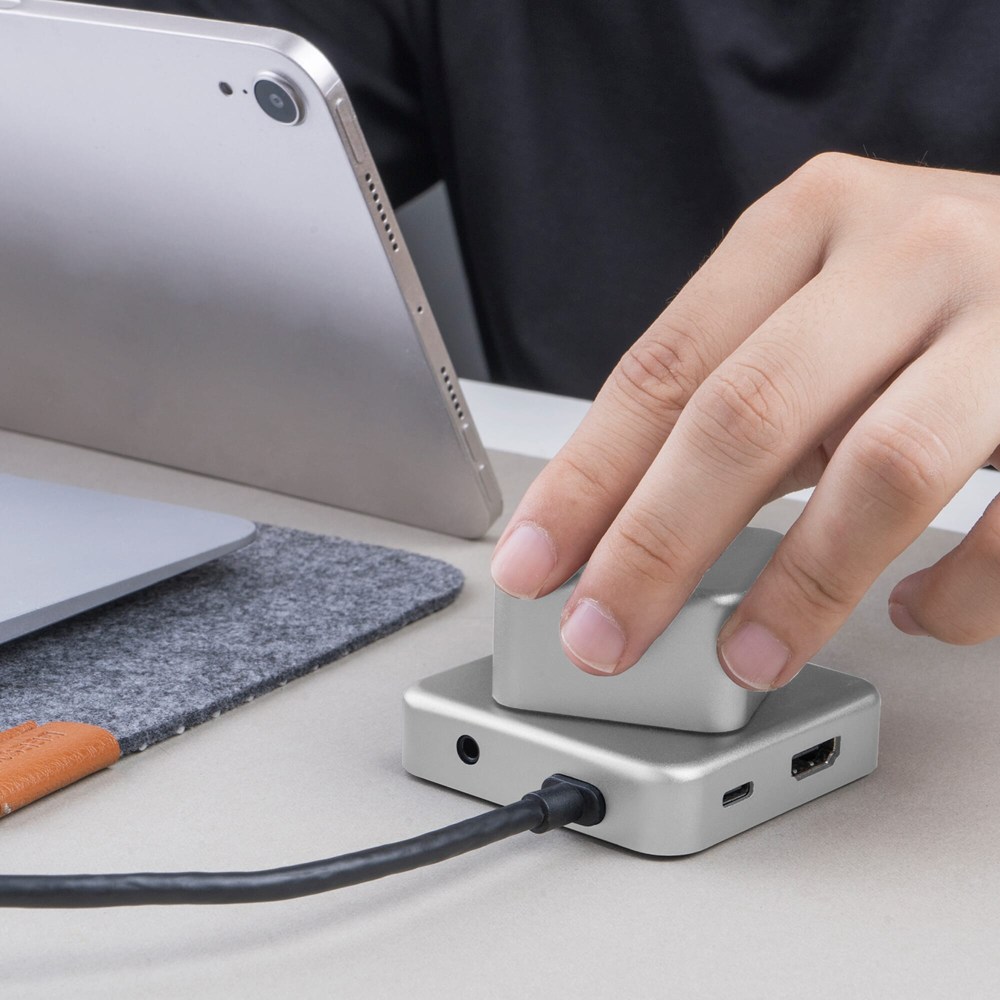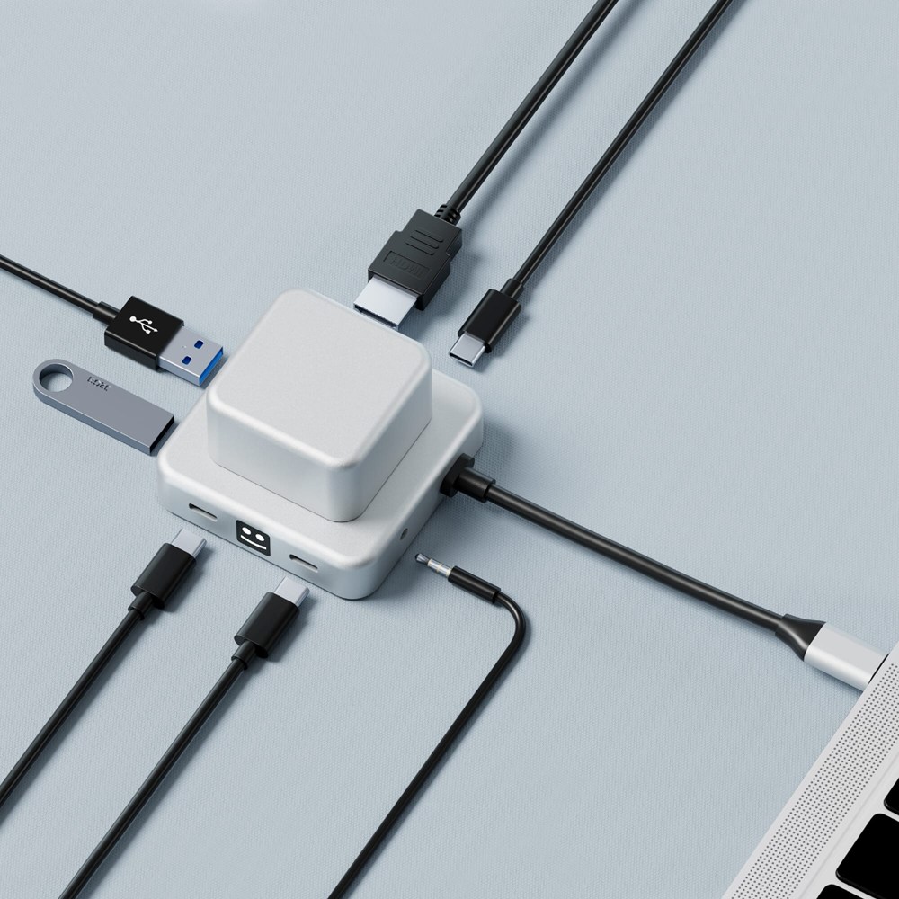 Hier gibt es keine Kompromisse! Unser Hub ist aus recyceltem Aluminium gefertigt, bietet eine stressfreie Rotation, unterstützt das Laden von Laptops mit bis zu 100 W PD und verfügt über mehrere Anschlüsse - 2 USB-A, 2 USB-C, HDMI und einen Audioanschluss. Erhöhen Sie Ihre Konnektivität auf nachhaltige Weise!