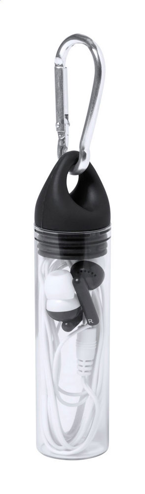 In-Ear-Kopfhörer mit 3,5 mm Audio-Stecker in Kunststoffbehälter mit Karabiner und farblich... mehr